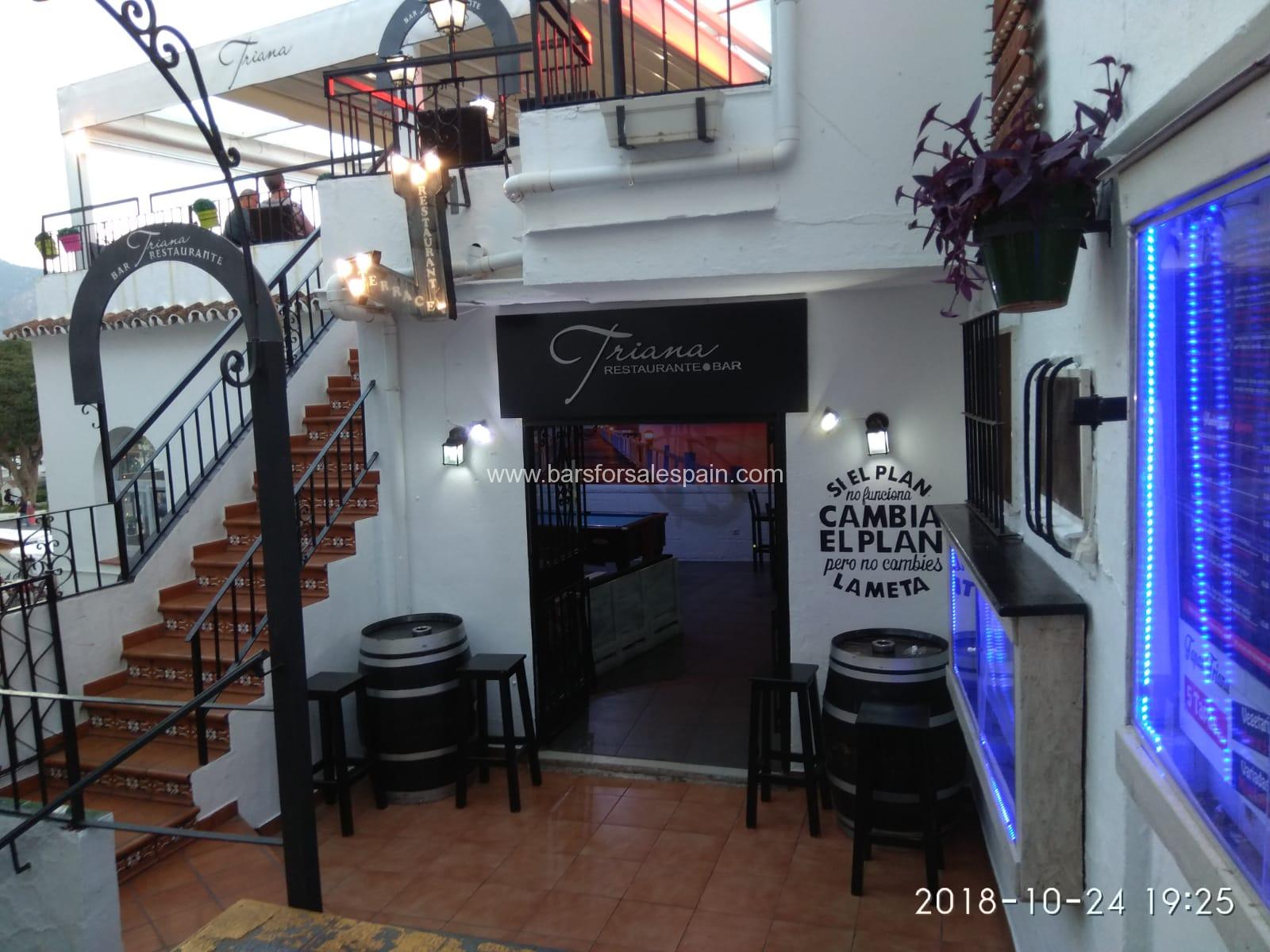 This fantastic Bar Restaurant is located right at the entrance to the town of Mijas. It is located on a very populated and busy avenue near other bars, restaurants and shops.This is an excellent bar restaurant leasehold opportunity, perfect for a working couple as it comes.