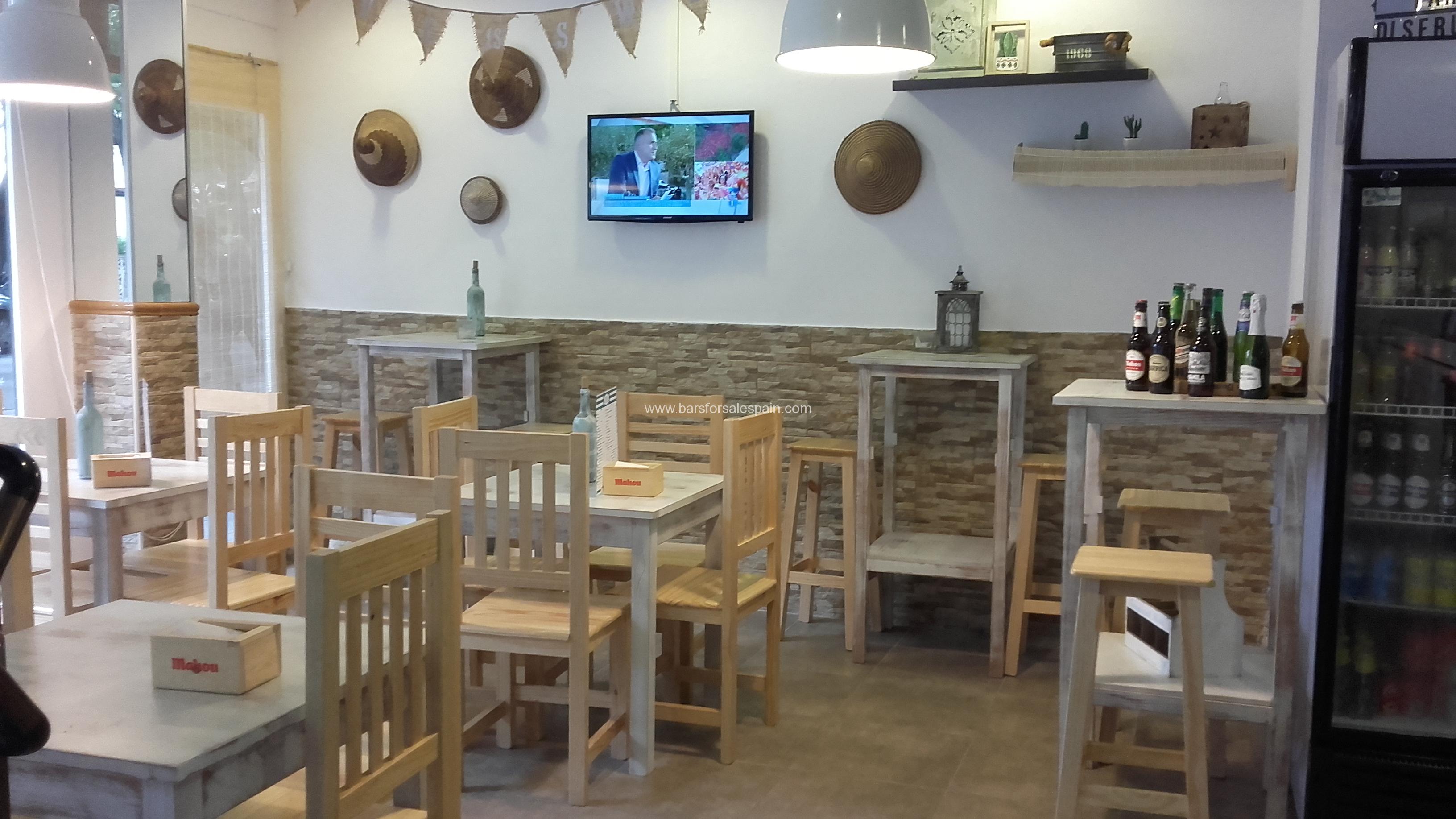 The bar is smaller but has everything that is needed to offer a good service to customers. It has a coffee machine, coffee grinders. a large fridge for drinks; soft drinks, juices and for bottles of beers as well. It also has two taps for beers, standard type cash register, hanging system for the glasses and on top of that the bottles of alcoholic beverages are kept and a device for the tapas as well.