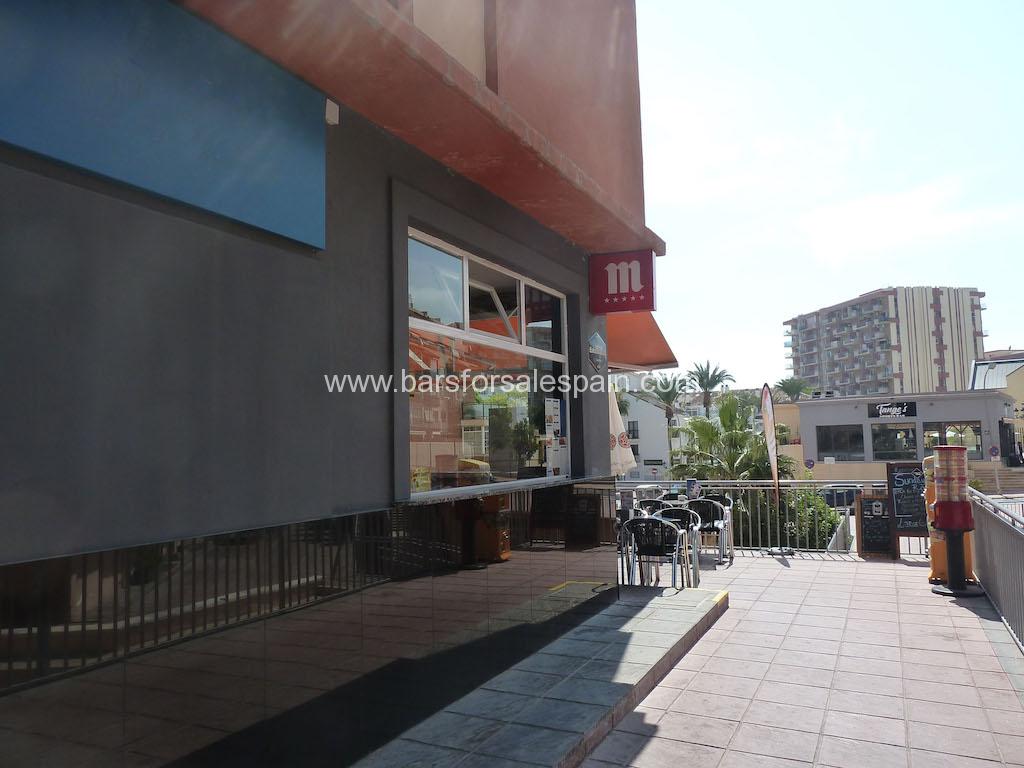 This modern Café bar is situated in Benalmadena on the Costa del Sol. A short distance from the airport and set in the heart of a multinational community. This area is open 365 days of the year and will give you great footfall and repeat business.