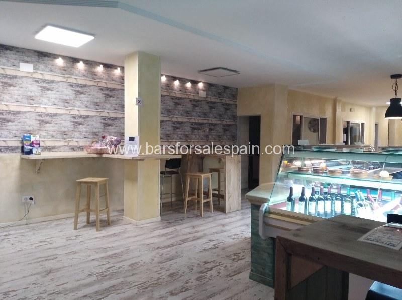 Accessed via double doors, the interior is 102m2. The light and bright bar area is very modern and well maintained. Four high stools add to the seating area.
